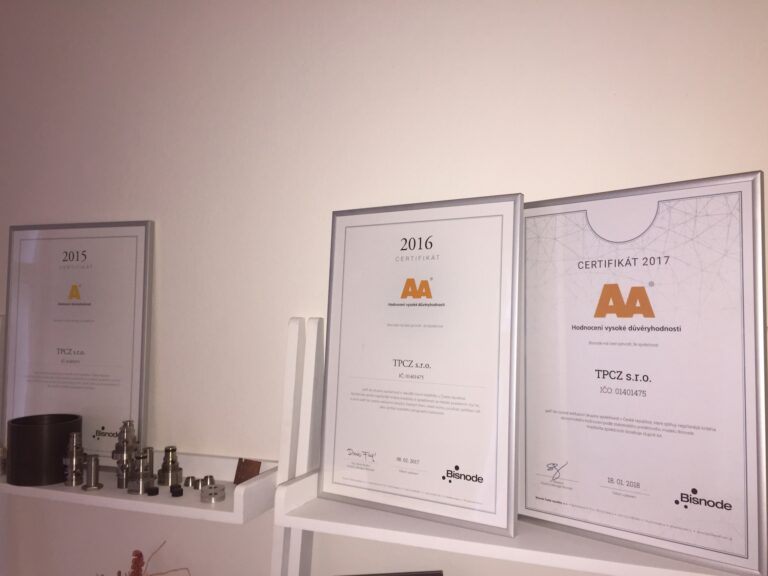 TPCZ s.r.o. has gained for her financial rating an AA rate. In 2015 we gained an A status, and since 2016 for already the second year an AA rating. The AA certifcate is the second to best positiion which a company is able to receive. The certificate was handed out by Bisnode in the Czech republic. Bisnode is a part of Dun and Bradstreet worldwide network. This certificate gives you as a partner the assurance that you work with a financial fit company which is able to fulfill its duties.